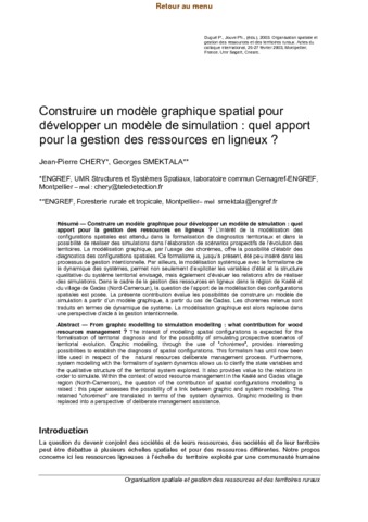2003. Construire un modèle graphique spatial pour développer un modèe de simulation : quel apport pour la gestion des ressources en ligneux ?.