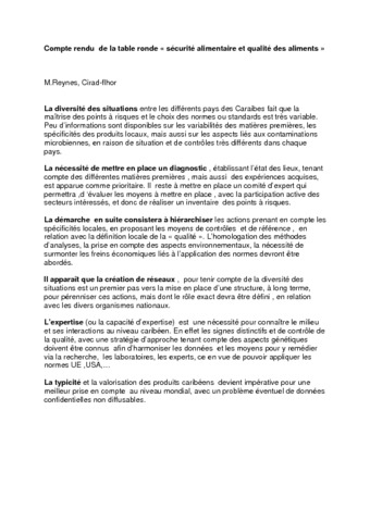 2001. Compte rendu de la table ronde Sécurité alimentaire et qualité des aliments.