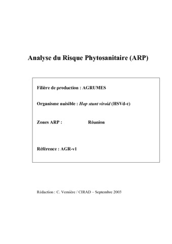 In : Analyses de risque phytosanitaire : appui à la rédaction de la réglementation spécifique aux départements d'outre-mer. Mourichon Xavier, Camou Romain, Ehret Pierre. CIRAD, CEE-POSEIDOM, France-Ministère de l'agriculture et de la pêche