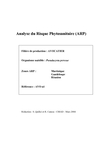 In : Analyses de risque phytosanitaire : appui à la rédaction de la réglementation spécifique aux départements d'outre-mer. Mourichon Xavier, Camou Romain, Ehret Pierre. CIRAD, CEE-POSEIDOM, France-Ministère de l'agriculture et de la pêche