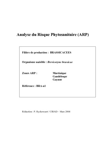 In : Analyses de risque phytosanitaire : appui à la rédaction de la réglementation spécifique aux départements d'outre-mer. Mourichon Xavier, Camou Romain, Ehret Pierre. CIRAD, CEE-POSEIDOM, France-Ministère de l'agriculture et de la pêche