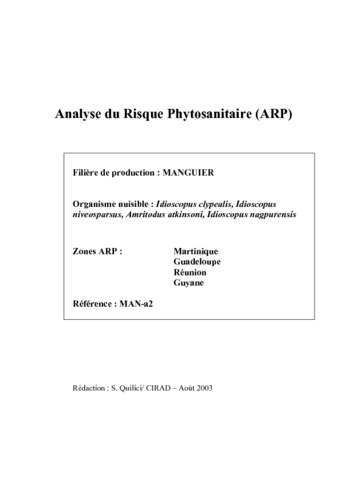 In : Analyses de risque phytosanitaire : appui à la rédaction de la réglementation spécifique aux départements d'outre-mer. Mourichon Xavier, Camou Romain, Ehret Pierre. CIRAD, CEE-POSEIDOM, France-Ministère de l'agriculture et de la pêche