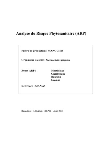 In : Analyses de risque phytosanitaire : appui à la rédaction de la réglementation spécifique aux départements d'outre-mer. Mourichon Xavier, Camou Romain, Ehret Pierre. CIRAD, CEE-POSEIDOM, France-Ministère de l'agriculture et de la pêche