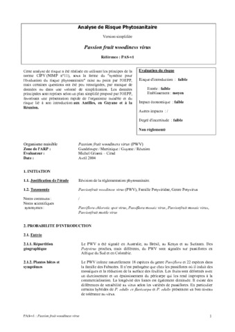 2004. Passion fruit woodiness virus référence PAS-v1.