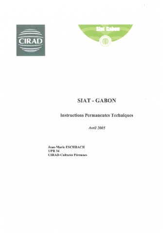 Eschbach Jean-Marie. 2005. SIAT Gabon, instructions permanentes techniques, avril 2005. Montpellier : CIRAD-CP, 11 p.