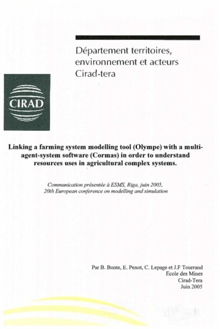 2005. Linking a farming system modelling tool (Olympe) with a multi-agent-system software (Cormas) in order to understand resources uses in agricultural complex systems.
