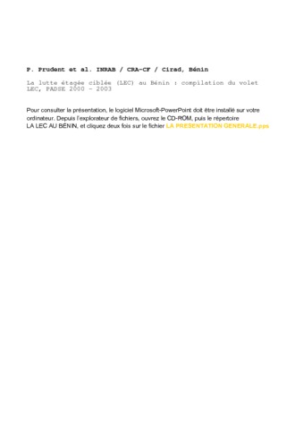 2005. La lutte étagée ciblée (LEC) au Bénin, compilation du volet LEC, PADSE 2000 - 2003.