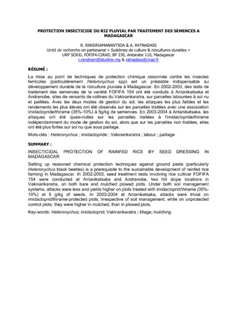 2005. Protection insecticide du riz pluvial par traitement des semences à Madagascar.