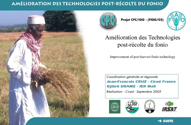 Cruz Jean-François, Drame Djibril. 2005. Projet CFC/IGG (FIGG/02). Technologies post-récolte du fonio. Amsterdam : CFC-CIRAD, 1 Cd-Rom