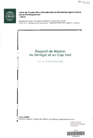 Ganry Jacky. 2005. Rapport de mission au Sénégal et au Cap Vert du 4 au 12 novembre 2005. Montpellier : CIRAD-FLHOR, 15 p.