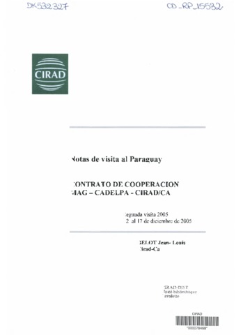 Bélot Jean-Louis. 2006. Notas de visita al Paraguay. Contrato de cooperacion MAG - CADELPA - CIRAD/CA, Segunda visita 2005 12 al 17 de diciembre de 2005. Montpellier : CIRAD, 21 p.