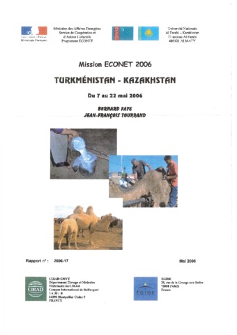 Faye Bernard, Tourrand Jean-François. 2006. Mission ECONET 2006 Turkménistan - Kazakhstan du 7 au 22 mai 2006. Montpellier : CIRAD-EMVT, 65 p. N° de rapport : CIRAD-EMVT N° 2006-17