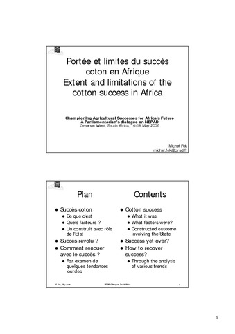 Titre anglais : Extent and limiations of the cotton success in Africa