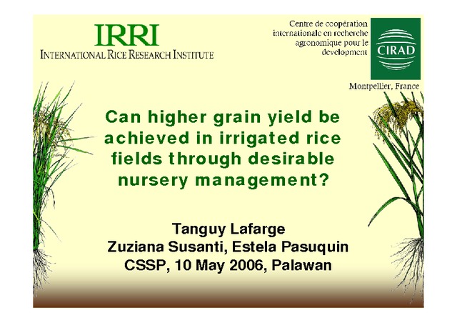 2006. Can higher grain yield be achevied in irriged rice fields through desirable nursery management?.