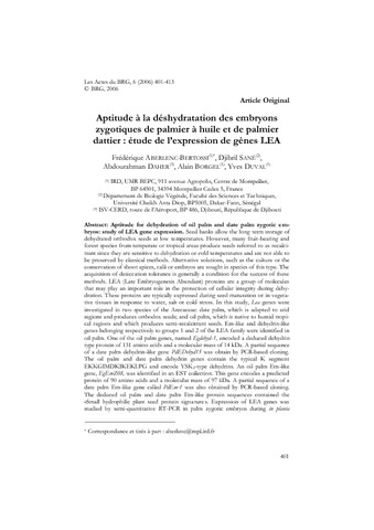 Titre anglais : Aptitude for dehydration of oil palm and date palm zygotic embryos: Study of LEA gene expression
