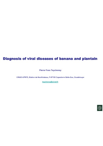 In : Workshop on the detection of viral diseases of banana and plantain = Taller técnico sobre deteccion de enfermedades virales en banano y platano. Teycheney Pierre-Yves, Lescot Thierry, Oliveros Oscar Arturo, Cayons Gerardo. CIRAD, Universidad Nacional de Colombia