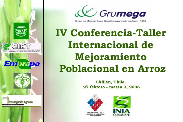 In : IV Conferencia - Taller Internacional de Mejoramiento Poblacional en Arroz, 27 de Febrero al 3 de Marzo de 2006, Chillan, Chile