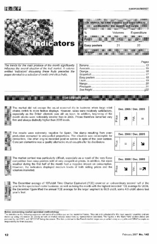 Imbert Eric, Gerbaud Pierre, Paqui Thierry, Bright Richard. 2007. European market, December 2006 : indicators. Banana, avocado, orange, grapefruit, easy peelers, litchi, mango, pineapple, sea freight. Fruitrop (English ed.) (142) : 12-22.