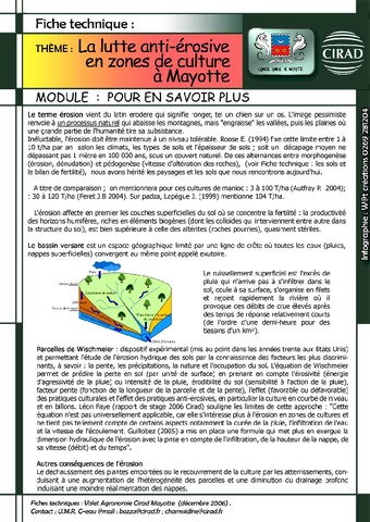 Bozza Jean-Louis, Chamssidine Houlam. 2006. La lutte anti-érosive en zones de culture à Mayotte. Module pour en savoir plus : fiche technique. Mamoudzou : CIRAD, 2 p.