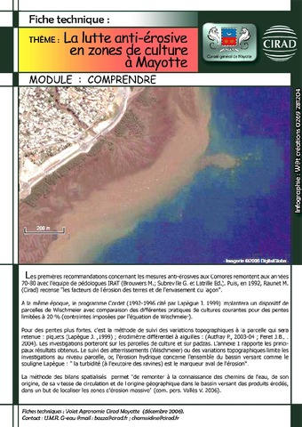 Bozza Jean-Louis, Chamssidine Houlam. 2006. La lutte anti-érosive en zones de culture à Mayotte. Module comprendre : fiche technique. Mamoudzou : CIRAD, 5 p.