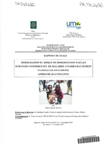 Olive Marie-Marie. 2007. Modélisation du risque de dissémination par les échanges commerciaux de maladies aviaires hautement pathogènes en Ethiopie : approche quantitative. Montpellier : UM2, 85 p. Mémoire de master 2 : Biologie géosciences agroressources et environnement. Productions animales en régions chaudes : Université Montpellier 2