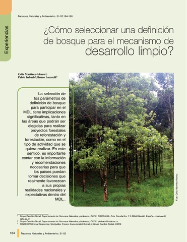 Martinez-Alonso Celia, Imbach Pablo, Locatelli Bruno. 2007. Como seleccionar una definición de bosque para el mecanismo de desarrollo limpio?. Recursos Naturales y Ambiente (51-52) : 184-190.