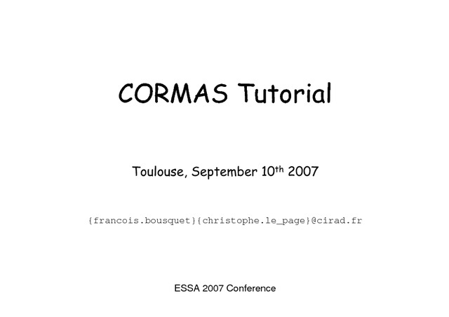 In : ESSA'07, 4th Annual Conference of the European social simulation association, Toulouse, France September 10-14, 2007