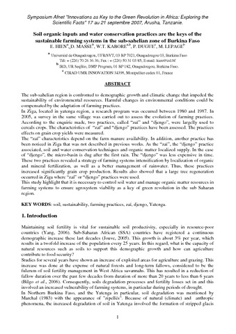 2007. Soil organic inputs and water conservation pratices are the keys of the sustainable farming systems in the sub-sahelian zone of Burkina Faso.