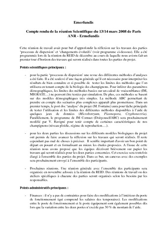 2008. Compte rendu de la réunion scientifique du 13-14 mars 2008 de Paris - ANR- Emerfundis.