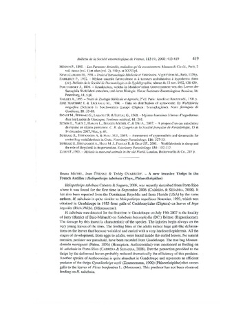 Michel Bruno, Etienne Jean, Ovarbury Teddy. 2008. A new invasive thrips in the French Antilles : Holopothrips tabebuia (Thys., Phlaeothripidae). Bulletin de la Société Entomologique de France (4) : 419-420.