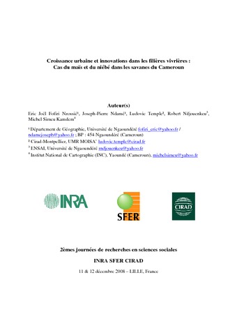 2008. Croissance urbaine et innovations dans les filières vivrières : cas du maïs et du niébé dans les savanes du Cameroun.