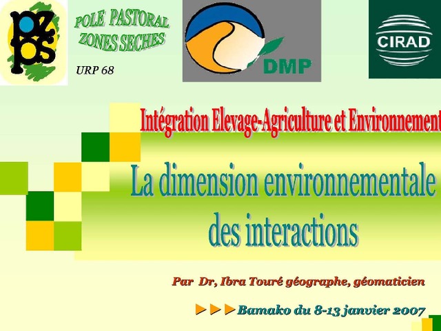 In : Intégration agriculture-élevage et environnement : une formation sur les méthodes et outils d'analyse et d'intervention, 8-13 janvier 2007, Bamako, Mali