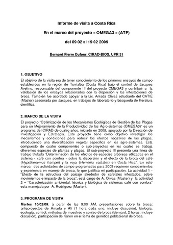 Dufour Bernard Pierre. 2009. Informe de visita a Costa Rica en el marco del proyecto OMEGA3 (ATP) del 09/02 al 19/02/2009. Montpellier : CIRAD-BIOS, 7 p.
