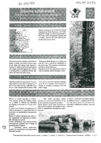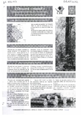 Gérard Jean, Guibal Daniel, Rathi Santosh. 2005. L'Okoumé " massif ". Des qualités techniques reconnues, une large gamme d'utilisations. Montpellier : CIRAD, 4 p.