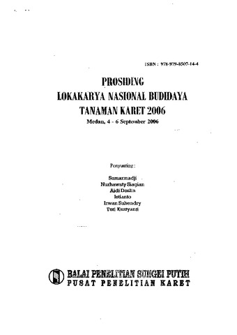 In : Prosiding Lokakarya Nasional Budidaya Tanaman Karet = National Workshop on Rubbert Cultural Practices, Medan, Indonesia, 4-6 september 2006. Eds Sumarmadji, Nurhawaty Siagian, Aidi Daslin, Istianto, Irwan Suhendry, Tuti Kustyanti