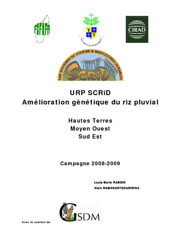 Raboin Louis-Marie, Ramanantsoanirina Alain. 2009. Amélioration génétique du riz pluvial. Hautes Terres, Moyen Ouest, Sud Est. Campagne 2008-2009. Montpellier : CIRAD, 91 p.