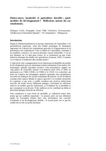 2009. Outres-mers, insularité et agriculture durable : quels modèles de développement ? Réflexions autour du cas réunionnais.