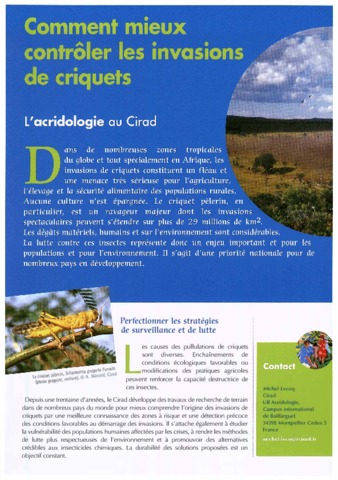 2010. Comment mieux contrôler les invasions de criquets : l'acridologie au Cirad.