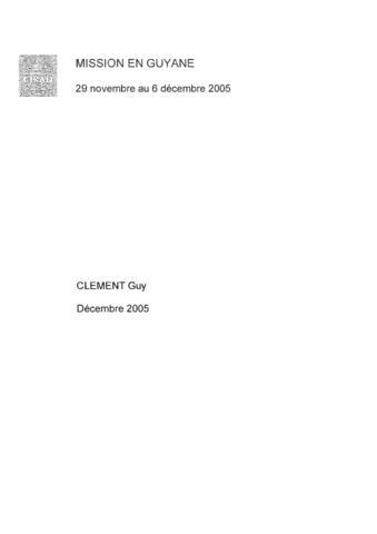 Clément Guy. 2005. Mission en Guyane, 29 novembre au 6 décembre 2005. Montpellier : CIRAD, 8 p.