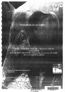 Drunet Nicolas. 2001. Production durable de gibier en milieu forestier : cas du potamochère (Potamochoerus porcus) au Parc de la Lekedi (Gabon). Cergy-Pontoise : ISTOM, 104 p. Mémoire de fin d'études : Ecole supérieure d'agro-économie internationale