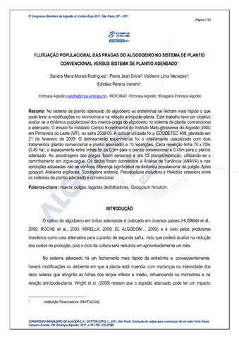 In : Evolução da cadeia para construção de um setor forte: Anais : 8° Congresso Brasileiro do Algodão e 1° Cotton Expo, São Paulo, Brasil, 19 a 22 de setembro de 2011