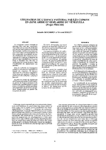 Guichard Isabelle, Dollé Vincent. 1985. Utilisation de l'espace pastoral par les caprins en zone aride et semi-aride du Vénézuela. Cahiers de la Recherche-Développement (7) : 75-82.
