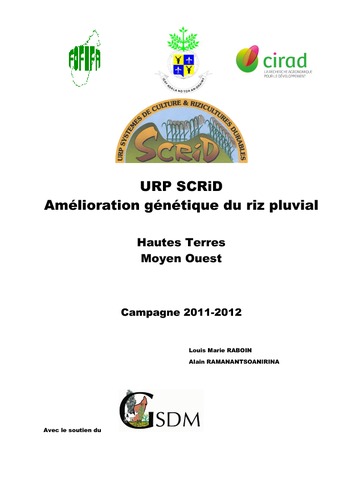 Raboin Louis-Marie, Ramanantsoanirina Alain. 2012. Amélioration génétique du riz pluvial. Hautes Terres, Moyen Ouest, Sud Est. Campagne 2011-2012. Antsirabé : CIRAD, 120 p.