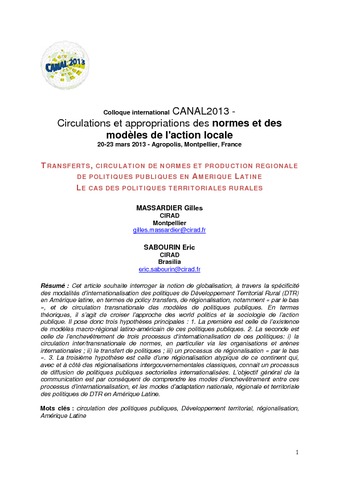 2013. Transferts, circulation de normes et production régionale de politiques publiques en Amérique Latine le cas des politiques territoriales rurales.