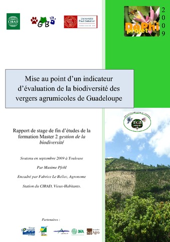 Pfohl Maxime. 2009. Mise au point d'un indicateur d'évaluation de la biodiversité des vergers agrumicoles de Guadeloupe. Toulouse : Université de Toulouse III, 61 p. Mémoire de master 2 : Gestion de la biodiversité : Université Paul Sabatier