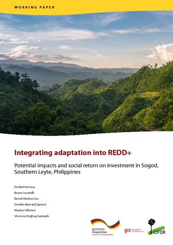 Pramova Emilia, Locatelli Bruno, Liss Bernd-Markus, Ignacio Gordon Bernard, Villamor Maylyn, Enghug Sumaylo Vivencio. 2013. Integrating adaptation into REDD+. Potential impacts and social return on investment in Sogod, Southern Leyte, Philippines. Jakarta : CIFOR, 71 p. (Working paper : CIFOR, 113)
