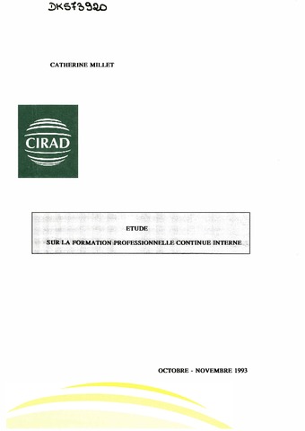 Millet Catherine. 1993. Etude sur la formation professionnelle continue interne. Montpellier : CIRAD, 55 p.