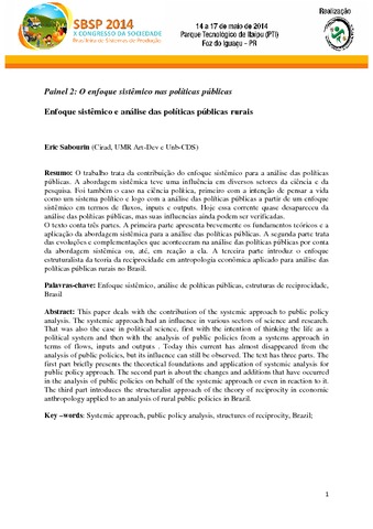 2014. Enfoque sistêmico e análise das políticas públicas rurais.