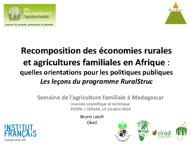 2014. Recomposition des économies rurales et agricultures familiales en Afrique : quelles orientations pour les politiques publiques. Les leçons du programme RuralStruc.
