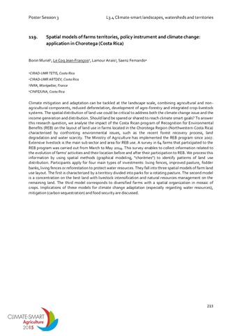2015. Spatial models of farms territories, policy instrument and climate change. Application in the Región Chorotega, Costa Rica. P119.